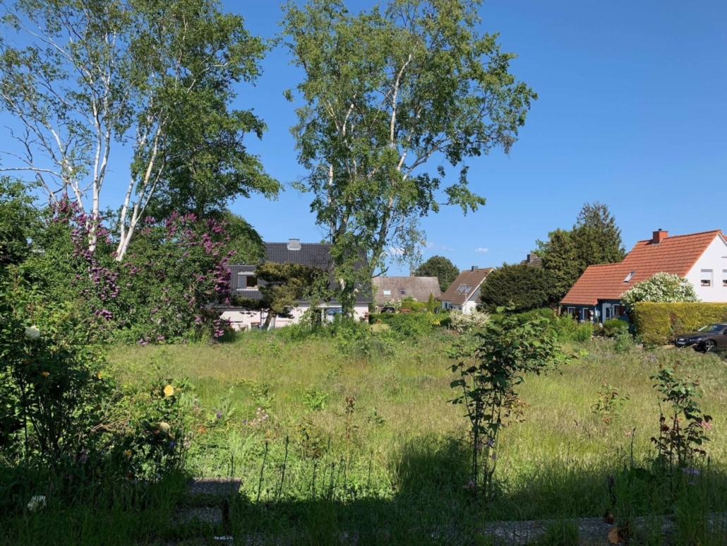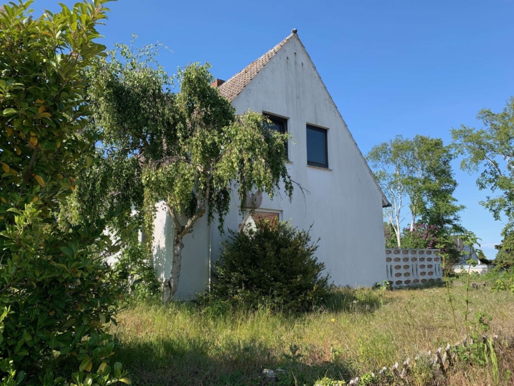 Der Vorgarten mit dem Abrisshaus