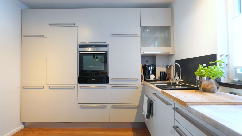 Ihre moderne Küche mit Lackfront in hellgrau matt …