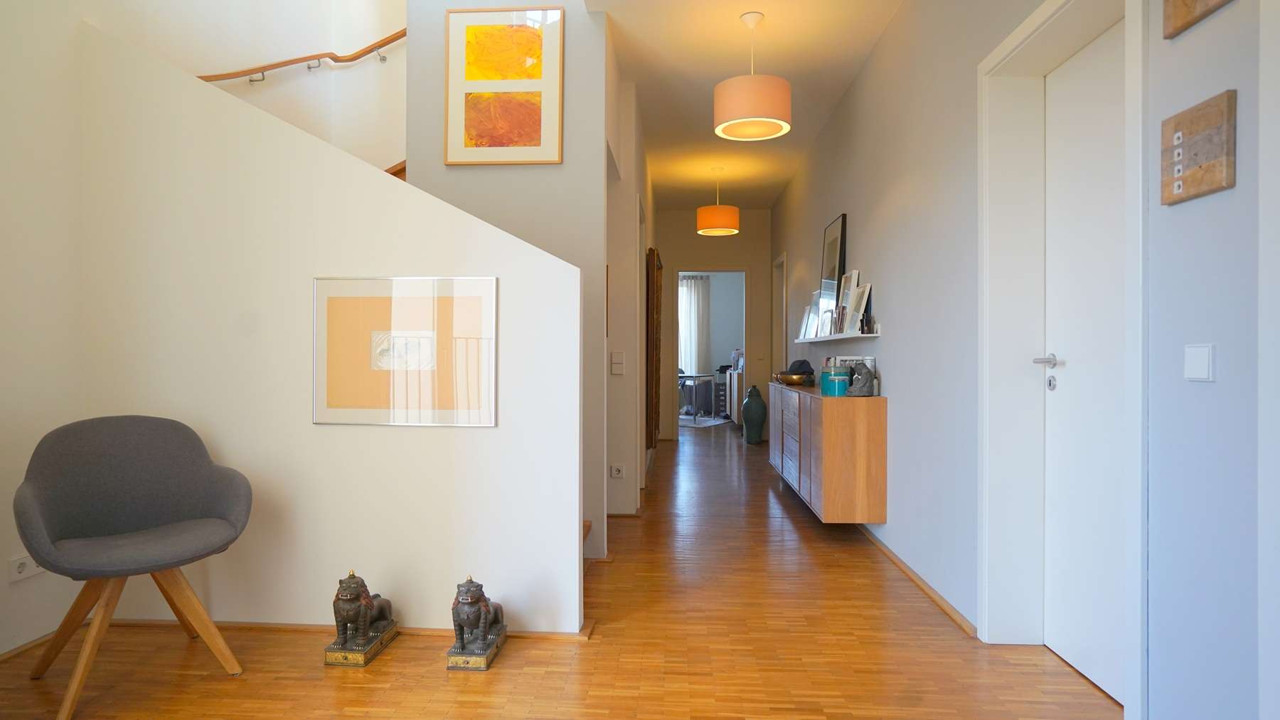 - Flur und Zimmer mit Eichenstabparkett