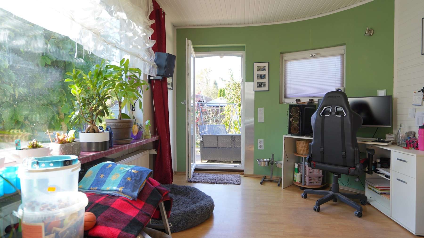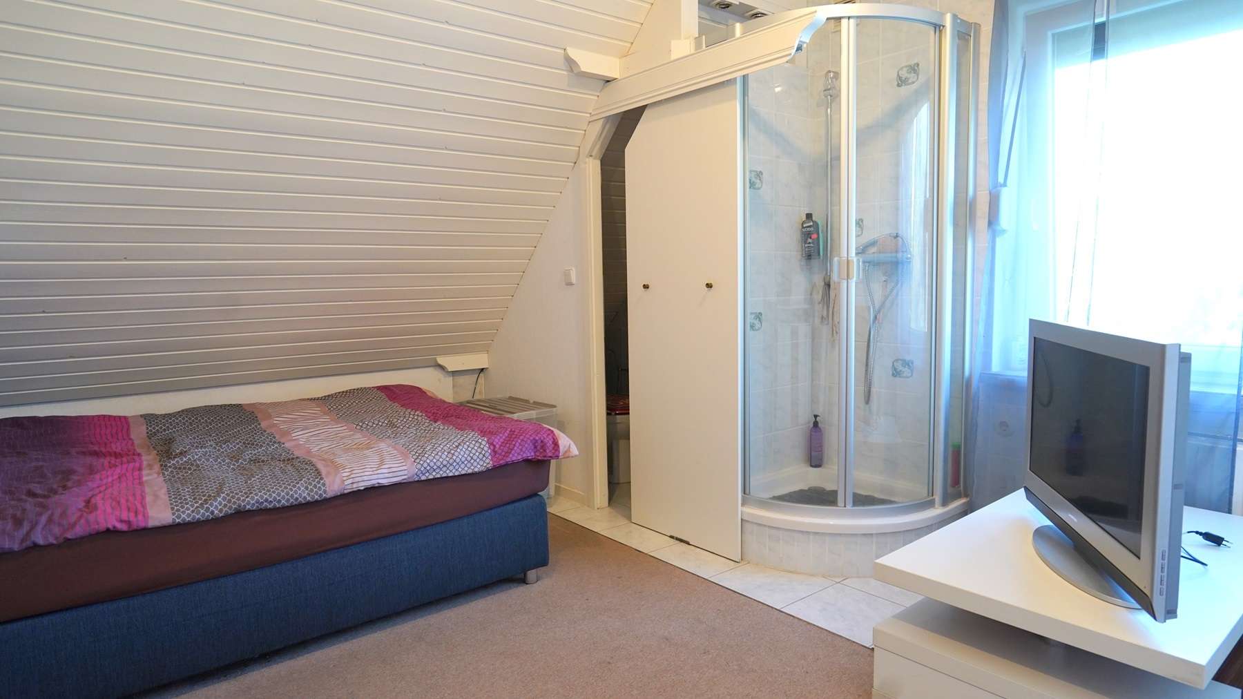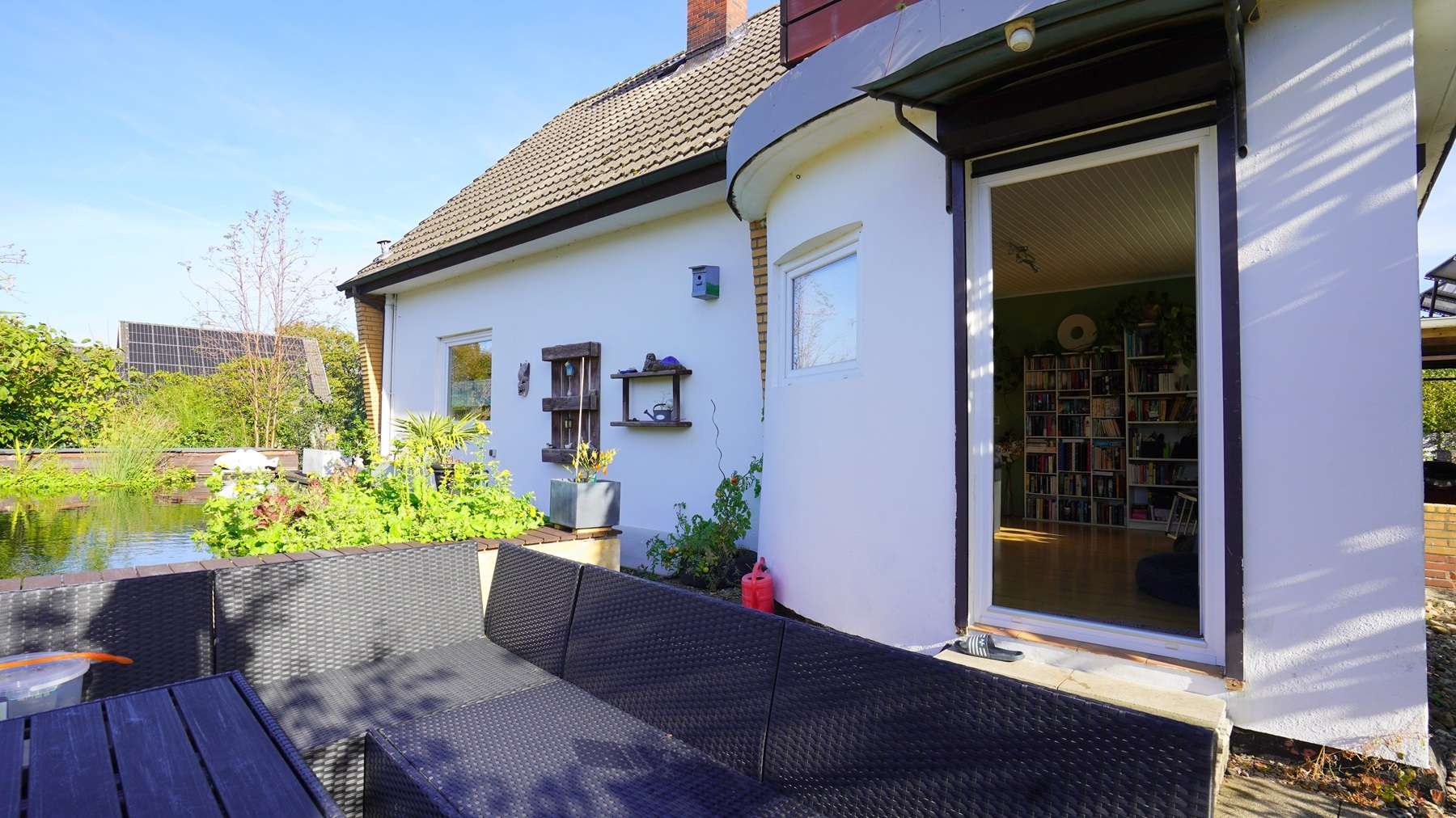 Alle Räume sind großzügig und hell, der Garten ist mit viel Liebe zum Detail angelegt. Besonders hervorzuheben ist der große Wohnbereich, in dem Sie Platz für Essen, Wohnen und auch Arbeiten haben. Durch einen Anbau aus den 80er Jahren ist im Obergeschoss eine wundervolle Dachterrasse entstanden, die über ein Schlafzimmer erreichbar ist. Das 2. Schlafzimmer verfügt über eine Duschecke und ein eigenes WC, abgetrennt durch eine Schiebetür.