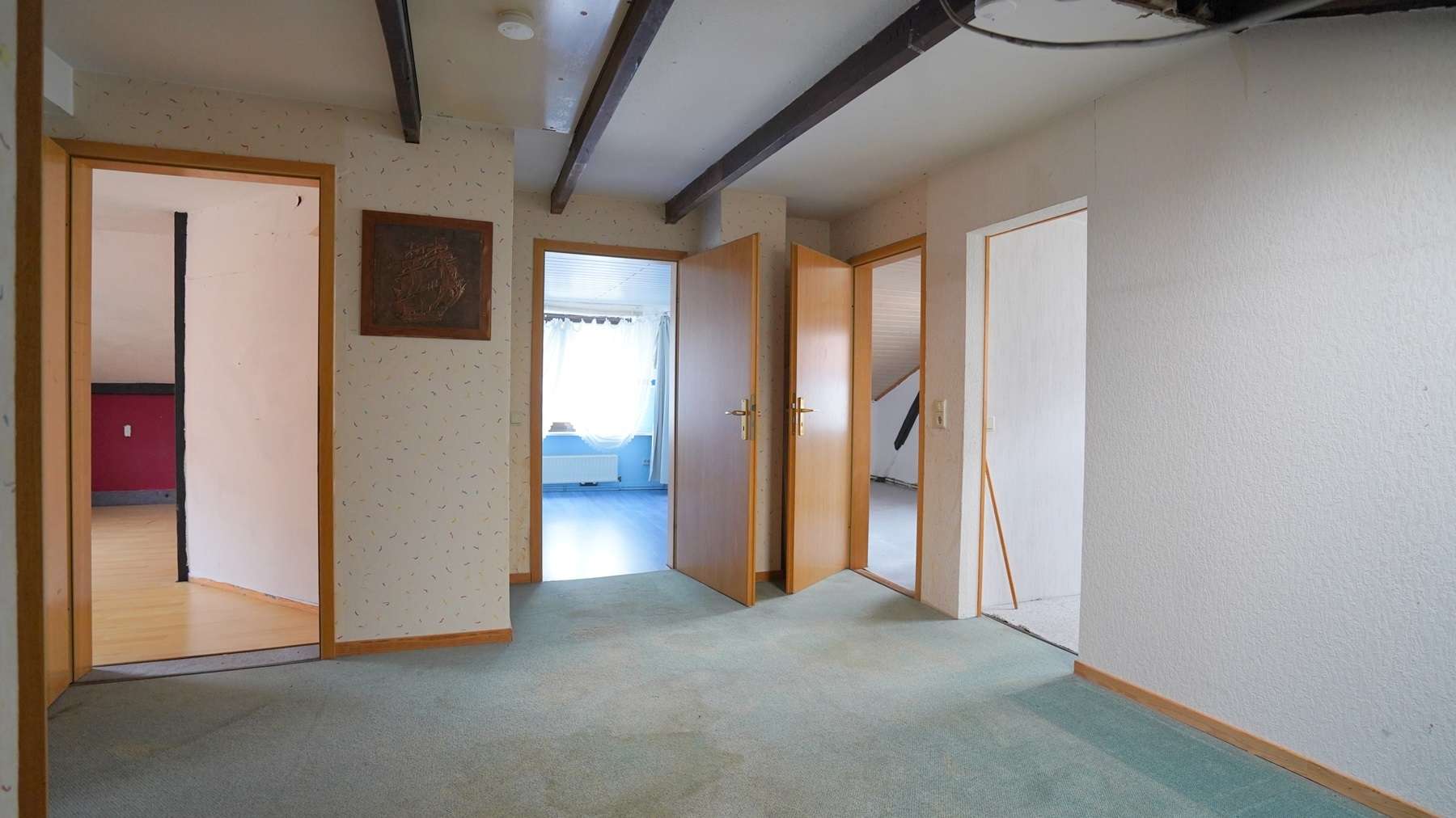 Im Obergeschoss finden Sie insgesamt 4 Schlafräume und einen großen Flurbereich. Weitere Ausbaumöglichkeiten sind hier gegeben.